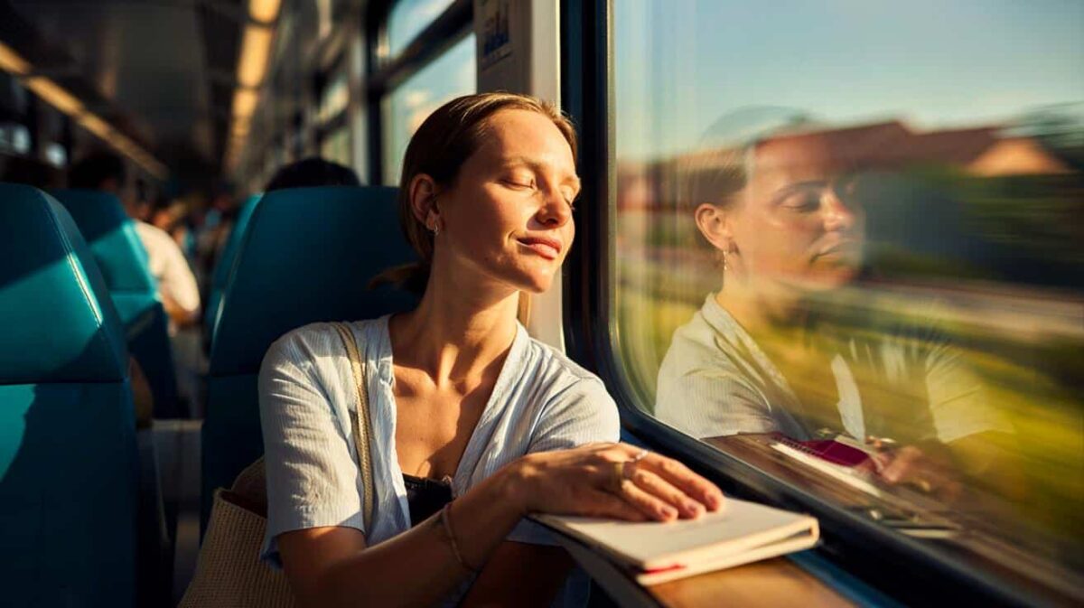 La finestra del treno riflette un viso stanco e una notifica che lampeggia: tre chat, due email, una riunione anticipata.